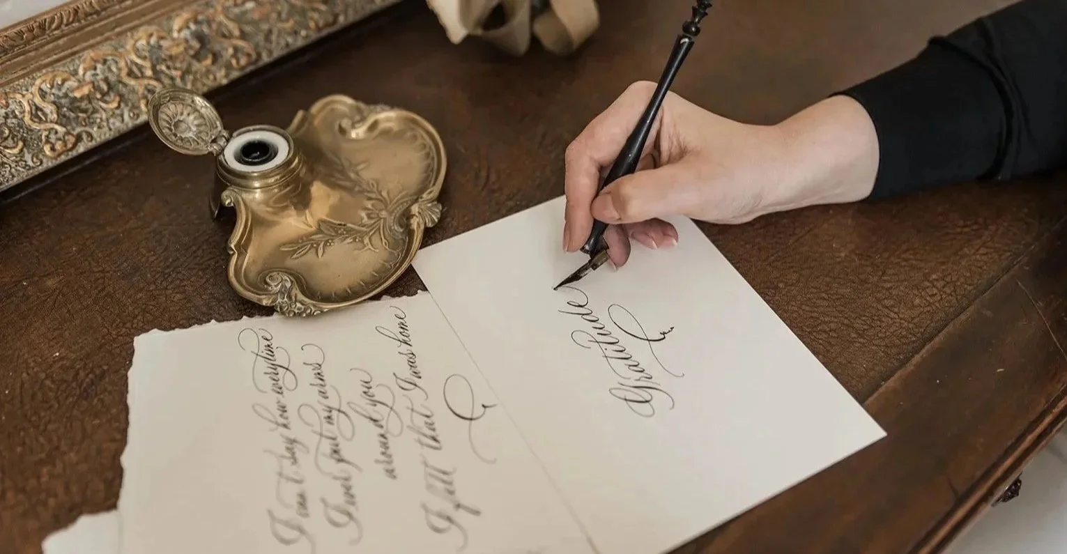 I fell in love with pointed pen calligraphy in 2016 after a Modern Calligraphy workshop in London. Over time, I discovered the timeless beauty of Copperplate and dedicated myself to mastering it, adding elegant flourishes along the way. Trained by world-renowned calligraphers, I now work across a range of scripts — from classic and ornamental to modern styles with a fresh, contemporary feel.